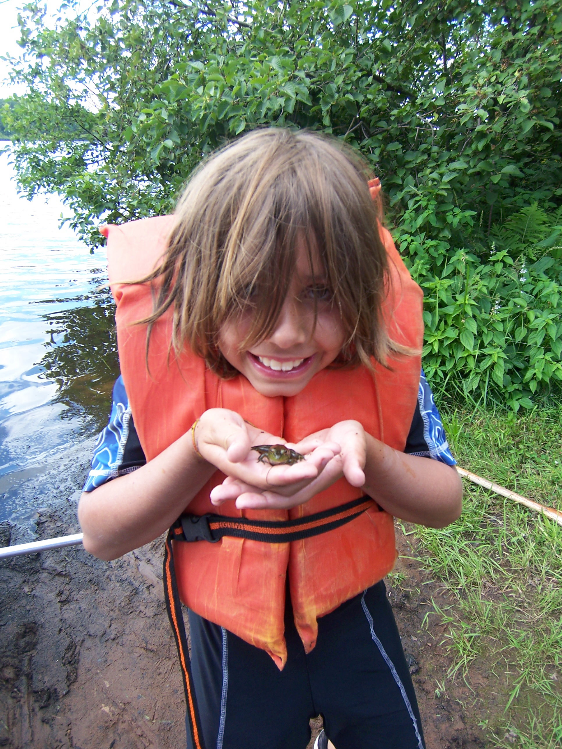 Maggie and Lily found a cool frog